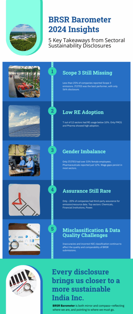 As sustainability disclosures mature in India, the BRSR Barometer offers a valuable lens to assess where sectors stand—and where they can go. While the data reveals persistent challenges around consistency, completeness, and sectoral comparability, it also points to clear areas of progress and leadership.